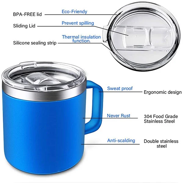 - El cuerpo recto de la taza y su superficie lisa brindan un agarre cómodo, lo que facilita su colocación en cualquier portavasos, bolsillo lateral de la mochila y bolso de mano, casi en cualquier lugar.