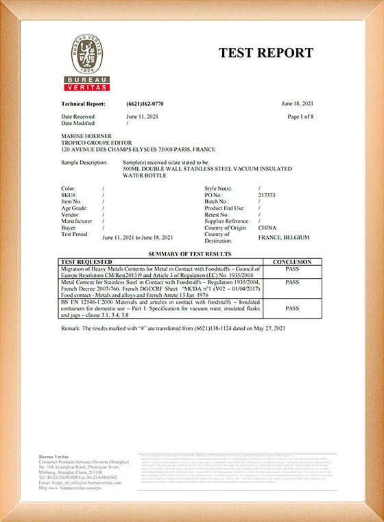 Contamos con un equipo independiente de investigación y desarrollo, con termo de acero inoxidable patentado independiente. La fábrica ha pasado la inspección y certificación BSCI.