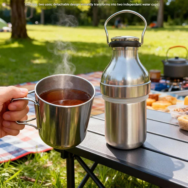 La duradera botella aislante desmontable para exteriores de Kudike es un termo genial, ¿por qué dices eso? Debido a su diseño y funcionalidad únicos, se puede desmontar en dos tazas, lo que significa que cuando compras un termo, varias personas pueden usarlo juntas. También viene con un asa, lo que lo hace muy cómodo de llevar. Creo que nuestra botella termo satisface todos los aspectos de tu maravillosa vida. Ya sea para acampar, desplazarse al trabajo, hacer senderismo o viajar, podemos proporcionar contenedores que estén aislados y sean fríos, lo que reduce de manera efectiva los desechos desechables.