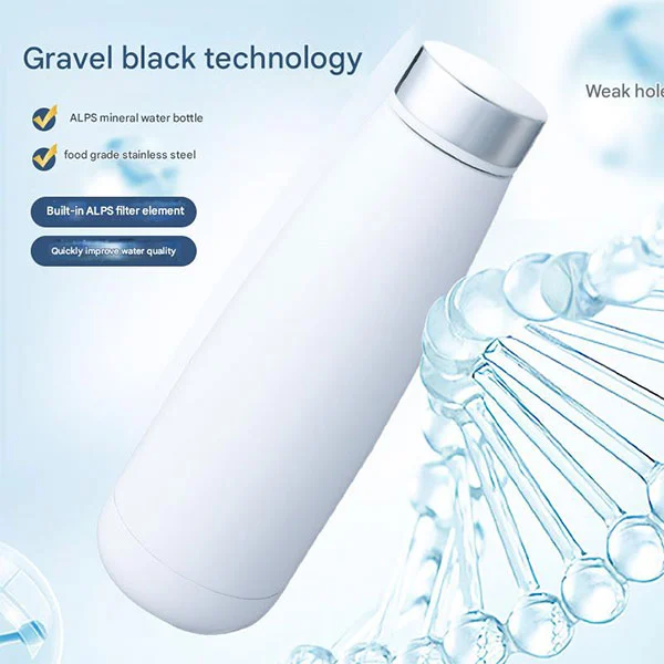 Por qué un aguaPurificación de taza aislada? Hemos diseñado un área de almacenamiento de té en la tapa, y dentro de él, hemos colocado materiales especiales ecológicos: partículas minerales Alps. Las partículas de Alpes son ricas en elementos como aluminio, magnesio, hierro, sodio y potasio. Estos elementos son beneficiosos para la salud y pueden mejorar la acidez y la alcalinidad del agua. Cuando bebe agua, el agua pasa a través de estas partículas para la purificación, volviéndose ligeramente alcalino. Esto hace que su agua potable sea más segura.