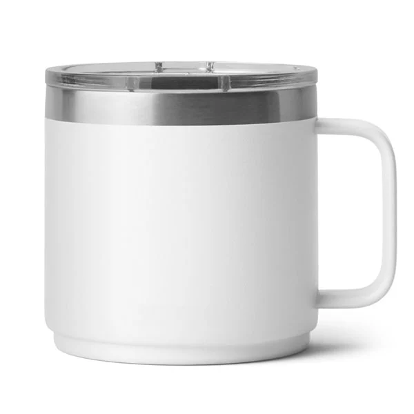 ElTaza de café de acero inoxidable de 14 ozEl cuerpo está recubierto con polvo de plástico, que es firme, resistente a la suciedad y seguro para los lavavajillas.