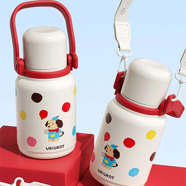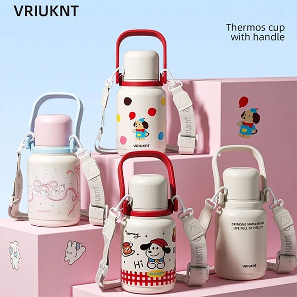El termo aislado se puede utilizar como una botella de agua imprescindible para que los niños vayan a la escuela o viajen, lo cual es muy adecuado para los niños porque sus manos son pequeñas y las correas pueden liberarlas.