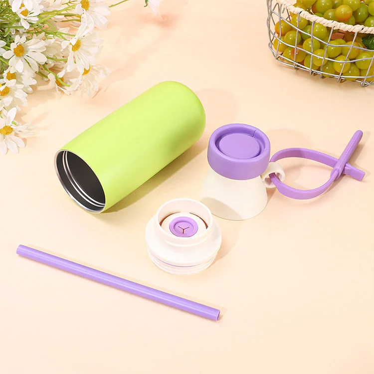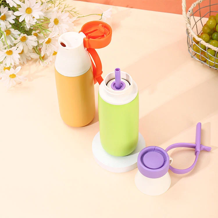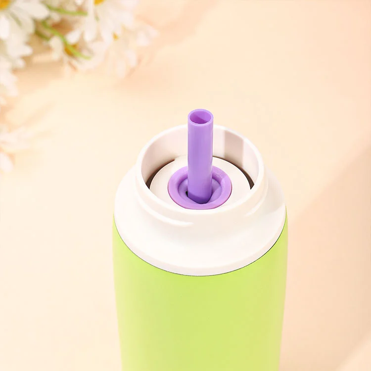 Cubierta deportiva con tapa 100% a prueba de fugas con pajita de acero inoxidable desmontable